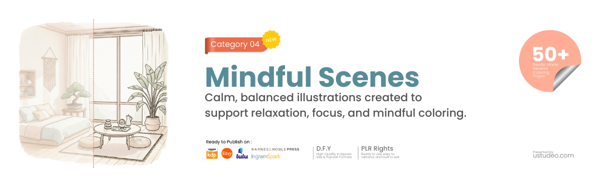 Soft Spaces isn’t just another coloring bundle. It’s a carefully designed reverse coloring collection built for calm, modern aesthetics — and real monetization potential. Let's see What You Get inside!