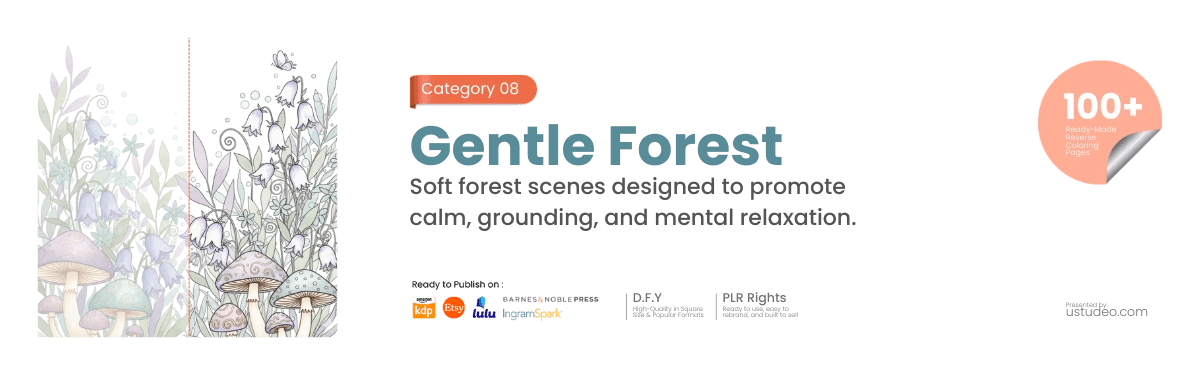 Inside Soft Spaces, you’ll receive a complete, ready-made reverse coloring page collection designed for calm, creativity, and effortless monetization.